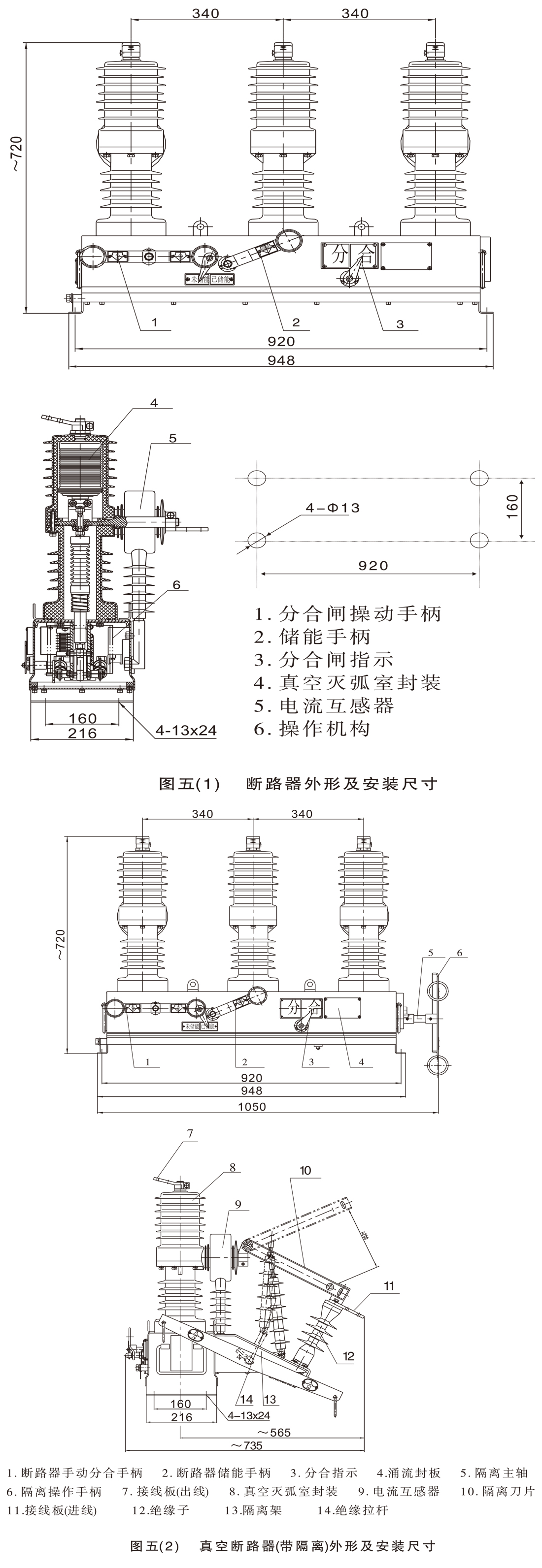 断路器由真空灭弧室、操动机构及支撑部件等组成,采用了三相支柱式的全封闭结构。